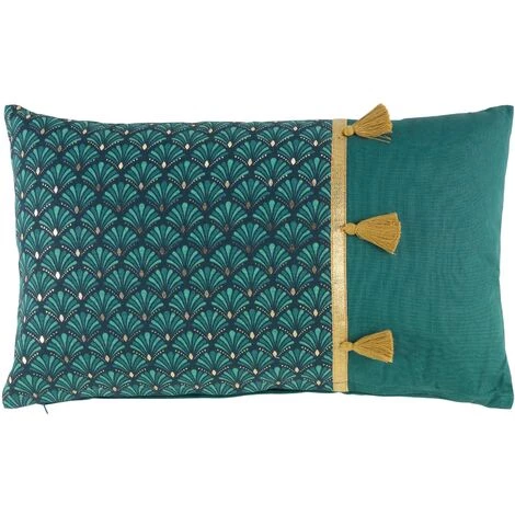 Finition : pompons, déhoussable avec fermeture zip. Motif au recto et uni au verso