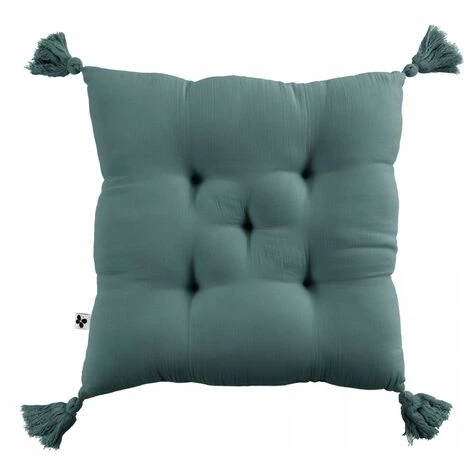 Assise matelassée 5 points avec pompons Gaze de coton 40 x 40 cm CANARD Dimension : environ 40 x 40 cm.