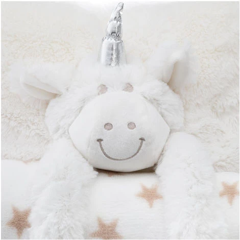 Atmosphera – Coussin décoratif Licorne avec son Plaid (-) Dimensions Coussin : L. 33 x l. 33 cm – – Dimensions Plaid : 100 x 75 cm -Matière : Polyester – (-) Modèle : Ecru