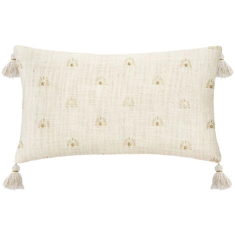 Atmosphera – Coussin déhoussable en Coton avec Perles et Pompons 38 x 58 cm (-)