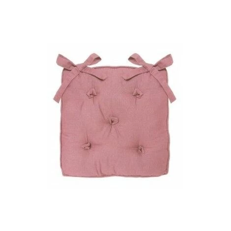 Couleur : rose clair. Dimensions : environ 38 x 38 cm. Épaisseur 5cm. Matière : 100% coton. Finition : attache par nouettes au dos de la chaise. 5 points.