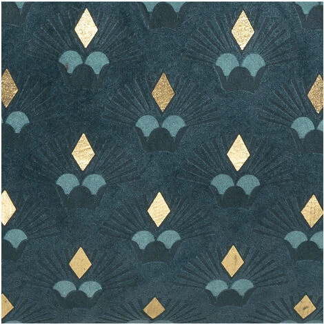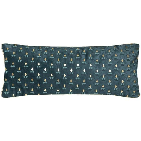 Atmosphera – Coussin velours Bleu Canard motif et contour Or 35 x 75 cm (-)