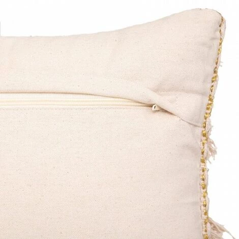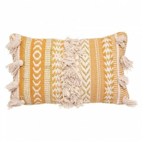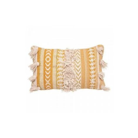Imprimé : coussin à motif ethnique et à pompons.