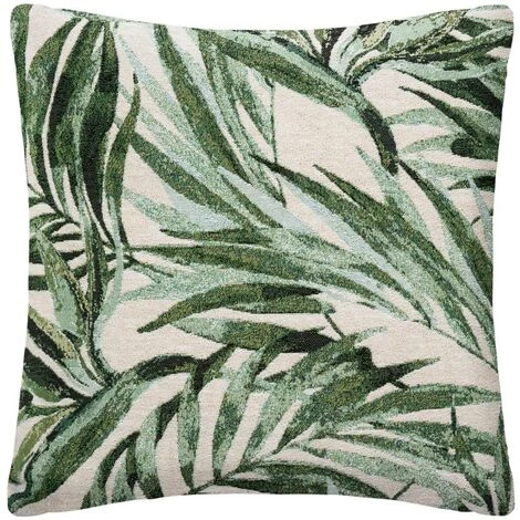 Changez la déco de votre intérieur passe aussi par les petits accessoires comme la housse de coussin jacquard Tropic très graphique jungle de format carré très réussi de dimensions 40 x 40 cm.