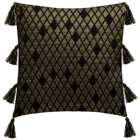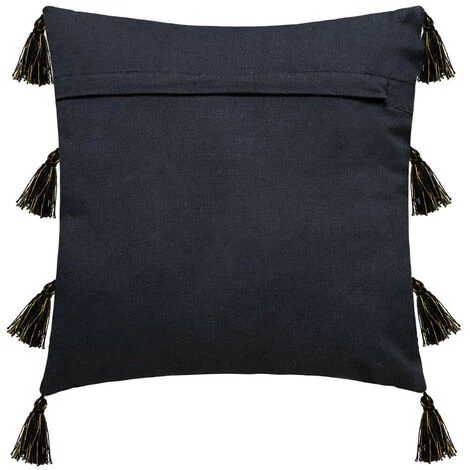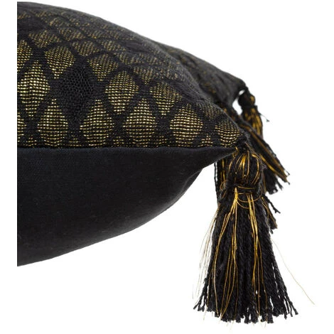 Atmosphera – Housse de Coussin Noir & Or Brillant avec Pompons 40 x 40 cm (-) Dimensions Produit : 40 x 40 cm –