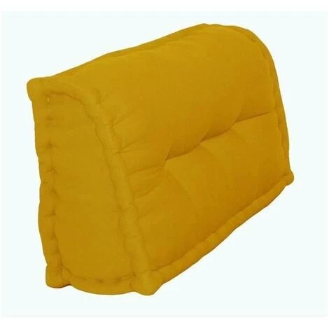 Dossier cale-reins 100% coton de coloris moutarde. Garnissage : fibres recyclées 100% coton. Convient pour les coussins et matelas de sol. Nettoyage de surface avec une éponge légerement humidifiée. Dimensions : 60×22/11×45 cm.