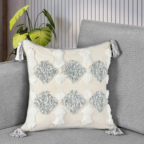 MATÉRIAU SUPRÊME: La partie touffetée et les glands de la housse de coussin tissée boho sont composés de 40 % de coton, 45 % de polyester et 10 % de fibres de viscose, et le dos est composé de 100 % de coton. Ce qui est durable et confortable, a un bon toucher et respectueux de votre peau, votre animal de compagnie.