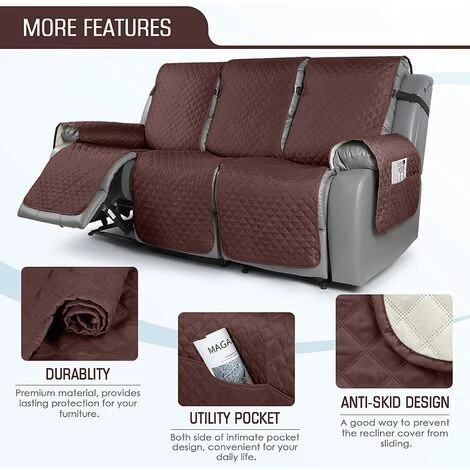 【MATÉRIAU DE HAUTE QUALITÉ】La housse de canapé inclinable est spécialement conçue pour votre fauteuil inclinable 3 places. Fabriqué en matériau souple de haute qualité, doux et confortable, il protégera bien vos meubles des taches du quotidien. Idéal pour les familles avec enfants et animaux de compagnie.