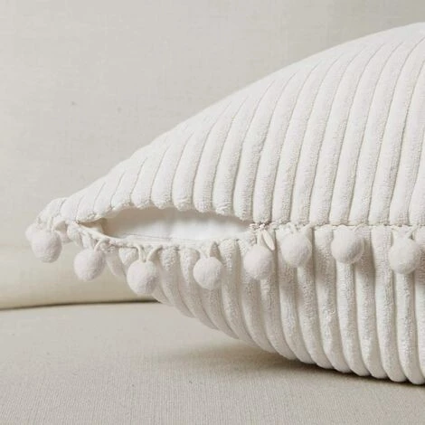 matière veloursCouleur blancheDimensions du produit 45L x 45W cmforme rectangleConditionnement : 2 taies d’oreiller 45 x 45 cm sans rembourrage.MATÉRIEL: Ces housses de coussin sont en velours côtelé de haute qualité, très douces, confortables et belles.Design : le design classique du siège en velours est simple et élégant, décoré de pompons et d’une fermeture éclair dissimulée pour une insertion et un retrait faciles de l’insert de siège.Housse de coussin décorative originale : ajoutez une touche de design à votre décoration, lit, canapé, chaise, voiture, terrasse, ferme, chambre, bureau et plus encore.Entretien facile : lavable en machine, entretien et entretien faciles, se sépare à l’eau froide, cycle délicat, pas d’eau de Javel ni de repassage.