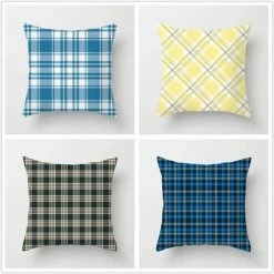 Lot De 4 Housses De Coussin Carré Décoratif-À Carreaux Moderne Simplicité Bleu Jaune 45x45cm FUIENKO