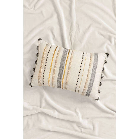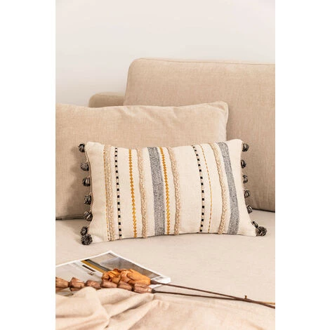 Décorer avec des coussins est une façon très facile, confortable et simple, pour créer rapidement un air différent à l’espace. De style nordique, Elmer est un coussin rembourré de forme rectangulaire tissé en coton. Cosy et confortable, il sera le complément décoratif parfait qui ajoutera une touche de couleur à votre environnement. Il a des pompons décoratifs qui ajoutent de l’élégance et de la sophistication au design, une pièce qui apportera vitalité et joie à l’environnement. Habillez votre canapé, lit ou fauteuil avec ce coussin et remplissez vos pièces de personnalité et de vie. Nous recommandons de laver à la main, à une température ne dépassant pas 30ºC et de ne pas utiliser de sèche-linge. Dimensions (Hauteur x Largeur x Profondeur): 30 cm x 45 cm x cm IMPORTANT : Le service standard porte-à-porte ne comprend pas la livraison et la collecte des marchandises au domicile du client, qui sont à la charge de ce dernier. Il est possible que le livreur aide volontairement à la livraison de la marchandise (ceci est totalement volontaire pour le livreur et la société de transport et ne relève pas de la responsabilité de Sklum).L’assemblage n’est pas non plus inclus.
