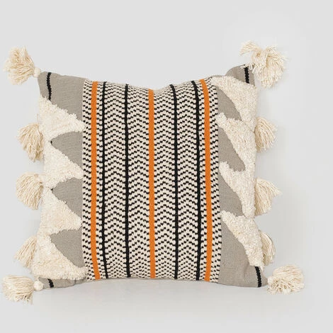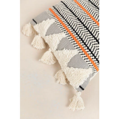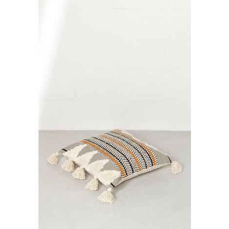 Les coussins sont des éléments décoratifs indispensables dans les différents espaces de détente des habitations. Procurez-vous ce coussin tissé 100% coton, qui a une forme carrée et combine de nombreuses couleurs vives et gaies. Il possède des franges sur ses côtés qui en font un coussin élégant et raffiné. Sa housse est amovible donc elle facilitera son nettoyage, favorisant ainsi son utilisation quotidienne. Un coussin apportera toujours commodité et confort à votre espace de repos, procurez-vous ce coussin et placez-le sur vos canapés du salon, fauteuil ou sur le lit de votre chambre. Combinez ce coussin avec d’autres tailles et formes disponibles sur notre site. Lavage en machine Maximum 30?C. Un petit tour. Ne pas utiliser de sèche-linge. Dimensions (Hauteur x Largeur x Profondeur): 50 cm x 50 cm x cm IMPORTANT : Le service standard porte-à-porte ne comprend pas la livraison et la collecte des marchandises au domicile du client, qui sont à la charge de ce dernier. Il est possible que le livreur aide volontairement à la livraison de la marchandise (ceci est totalement volontaire pour le livreur et la société de transport et ne relève pas de la responsabilité de Sklum).L’assemblage n’est pas non plus inclus.