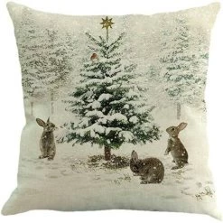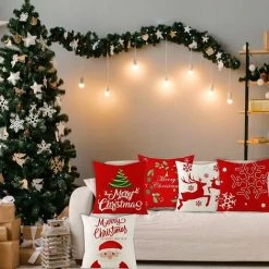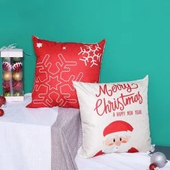 SUN FLOWER Lot De 4 Housses De Coussin De Noël En Coton Et Lin Motif Père Noël 45 X 45 Cm