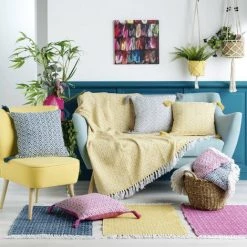 1001KDO POUR LA MAISON Coussin A Franges 45 X 45 Cm Vanina Jaune