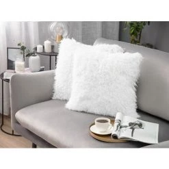 BELIANI Lot De 2 Coussin Décoratifs En Tissu Blanc 32x12cm – Blanc