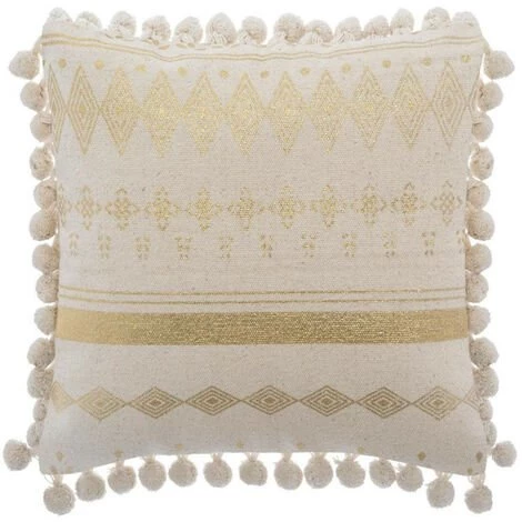 Enveloppé dans une housse en coton, ce coussin carré apportera une touche précieuse à votre décor avec son impression métallisée, ses motifs en relief ou ses pompons sur le tour, selon le modèle choisi.