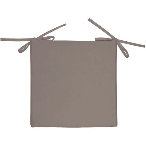 Galette de chaise extérieure enduite imperméable. Finition: à nouettes. Couleur: moka. Composition: enveloppe 100% polyester. garnissage mousse polyester. Dimensions: 40x40x5 cm
