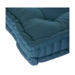 Coussin carré entièrement déhoussable, composé d’une housse extérieure en polyester lavable fermée par un zip et d’un rembourrage intérieur effet plume en microsphères de polyester doux.