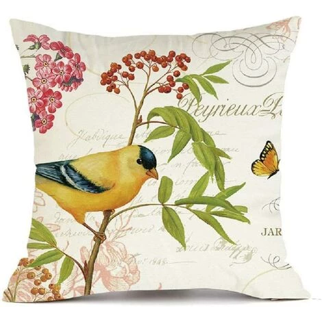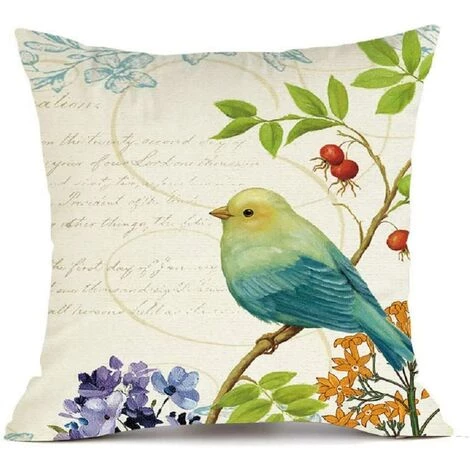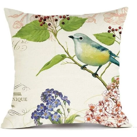Couvre-oreillers décoratifs 18X18 pouces Fleur et Oiseau de vie Housses de coussin 45cm x 45cm Ensemble de 4 taies d’oreiller bleu jaune Polyester doux Carré Canapé Canapé Taies d’oreiller