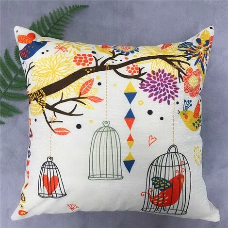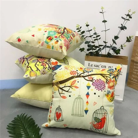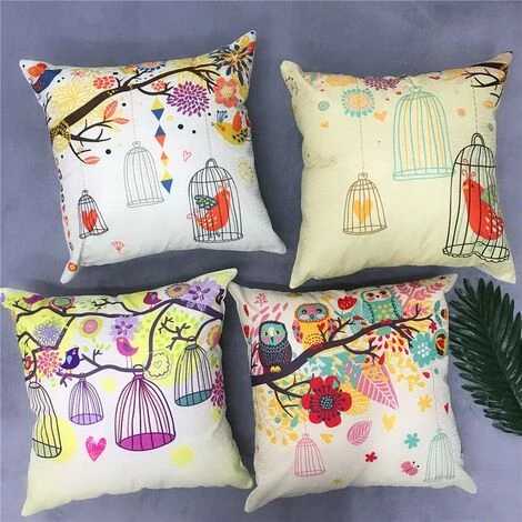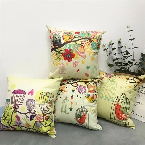 Ensemble de 4 coussins décoratifs de canapé en coton et lin avec cage à oiseaux hibou