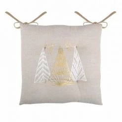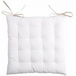 LOVELY CASA Lot De 4 Galettes De Chaise 16 Points 40×40 Duo écru Lin Coton – Blanc
