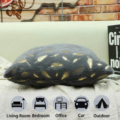 【Divers modèles】- La surface du housse de coussin est une peluches douce et délicate, avec des plumes dorées motifs des deux côtés. Et apportez une touche luxueuse à votre intérieur.