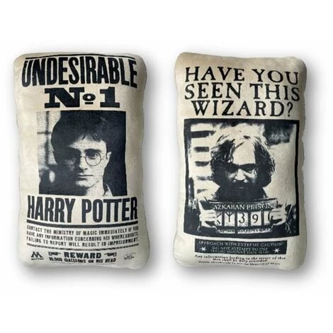 SOUS LICENCE OFFICIELLE : 1 coussin Harry Potter, produit sous licence officielle, véritable objet issu de l’univers Pop Culture. On y retrouve d’un côté l’avis de recherche de Sirius Black, évadé de la prison d’Azkaban, et de l’autre côté, l’ennemi public numéro 1 : Harry