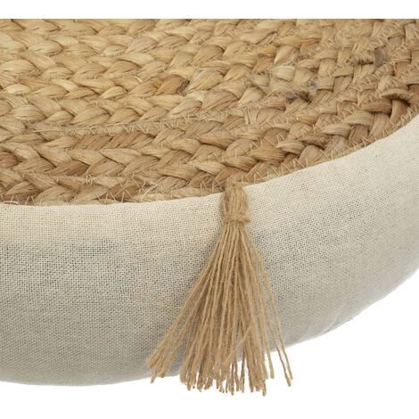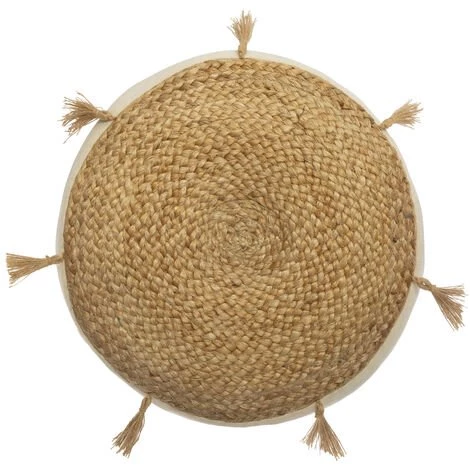 Craquez pour ce coussin de sol en jute et coton. . Le dessus de ce coussin orné de pompons est en jute. . Le contour de celui est en tissu. Sa hauteur de 8 cm lui apporte un maximum de confort et de moelleux. . . Caractéristiques : . Dimensions : Diamètre 38 x H.8 cm ou Diamètre 45 cm x H.8 cm. Coloris : beige. Composition : Dessus 100% jute, Garnissage 100% coton. . Vendu à l’unité