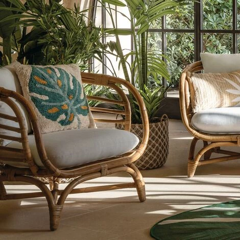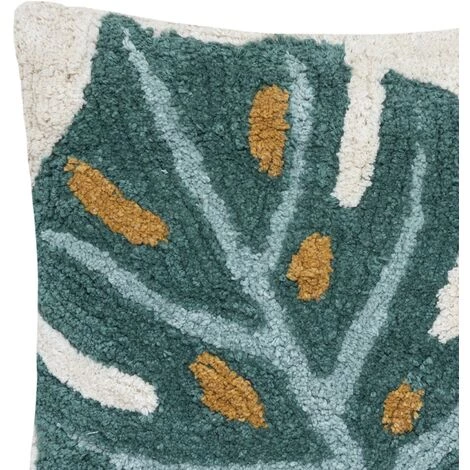 Craquez pour ce coussin au style végétale qui sublimera votre déco. Simple et moderne, ce coussin moelleux arbore une grande feuille de palmier. La housse 100% coton est douce et confortable. Son zip discret permet de l’entretenir facilement. Son motif tufté donnera un aspect chaleureux à votre espace de vie.Créez une ambiance harmonieuse en posant ce coussin sur un fauteuil en rotin.Dynamisez votre intérieur en y associant des décorations murales en bois et des voilages aux imprimés assortis. Lavable en machine à 30°C. Vendu à l’unité.