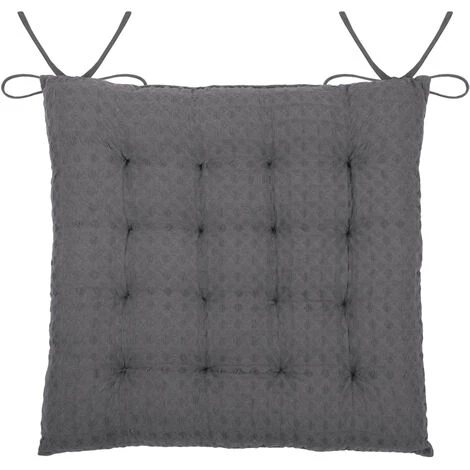 Cette galette de chaise réversible en 40 x 40 cm vous permettra de changer de décoration en retournant vos galettes, tout simplement. . La première face est en nid d’abeille tandis que l’autre face est unie. Matelassage en 16 points qui la rendra très confortable et deux nouettes qui permettront de la maintenir en place. . Découvrez également dans cette même gamme un plaid assorti. . Caractéristiques :. Dimensions : 40 x 40 cm. Coloris : kaki, souris, canard, écru, poudre et curry. Composition : 100% coton. Finition : 2 nouettes. . Vendue à l’unité