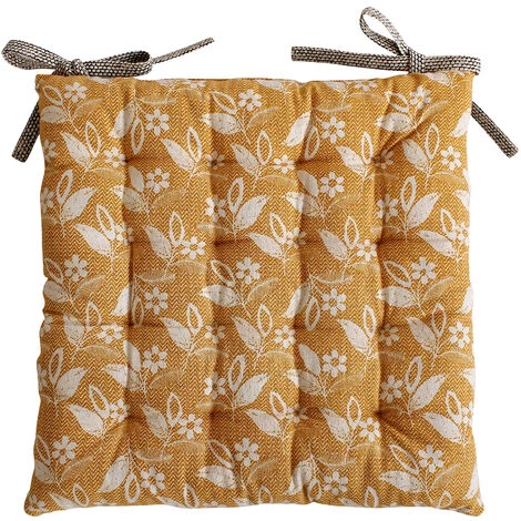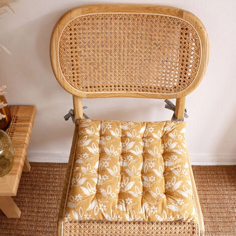 Cette galette de chaise fera de votre cuisine un espace coloré et rafraîchissant. . Ses motifs fleuris évoquent un esprit bohème et naturel. . Le verso est à pointillés bicolores. Son garnissage est en 100% coton recyclé avec un effet de matelassé en 16 points. 2 liens serviront à la maintenir en place sur votre chaise. Pas de lavable en machine. . D’autres articles assortis sont disponibles sur notre site. Vendue à l’unité.