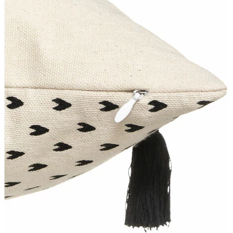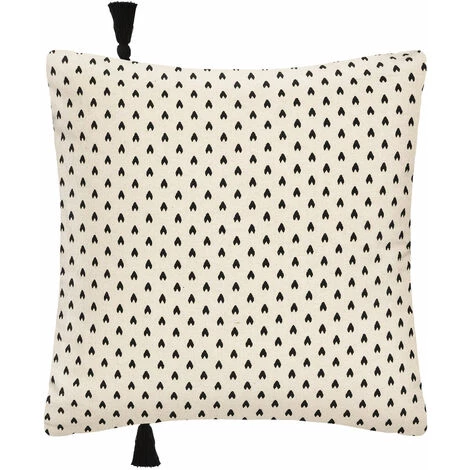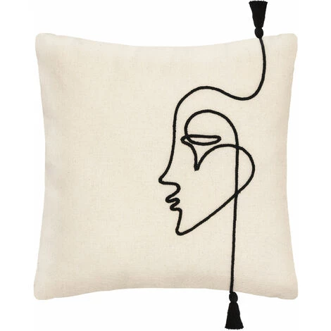 Moderne et originale, cette housse de coussin est composée d’une cordelette noire formant un visage. Un style épuré émane de cette housse qui sera finalisée par 2 pompons noirs à chaques extrémités. Le recto est à petits motifs géométriques noir sur un fond blanc/ivoire. Son système de fermeture se fera par un zip. . A disposer sur un canapé ou sur un lit . Lavable en machine à 30°C. . Nous vous proposons également un coussin de garnissage afin de mettre en forme votre housse. . Caractéristiques :. Dimensions : 40 x 40 cm. Composition : 100% coton. Coloris : blanc/ivoire. Finition : zip. . Vendue à l’unité