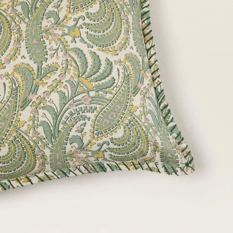 Avec Padma nous revisitons le motif cachemire dans une version fraîche et colorée. Ce très joli « paisley » issu de nos archives, s’imprime sur un métis en coton lin et conserve son aspect traditionnel. Le studio de création a choisi de border d’un point lancé contrasté chaque housse de coussin pour sublimer son caractère artisanal authentique. Parfait pour apporter une atmosphère bohème très délicate à un salon, un coin détente ou une chambre, il se mariera avec toutes nos créations. A compléter avec nos coussins de garnissage.