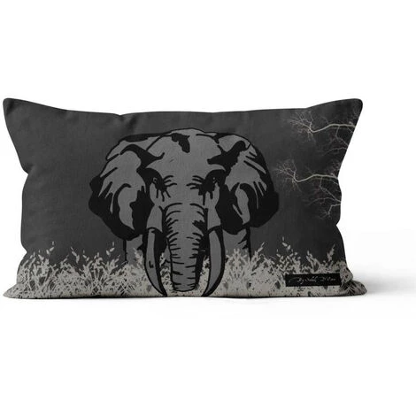 Housse de coussin décoratif rectangle imprimé éléphant, Ultra pratique à laver avec son zip! Toucher ultra-doux, Composition : 100% polyester microfibre 200 Gr/m2 Taille : 32×50 cm