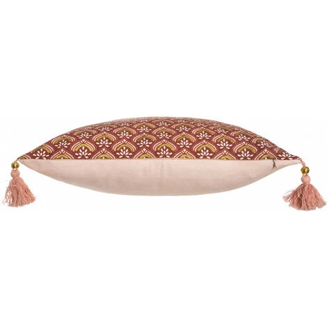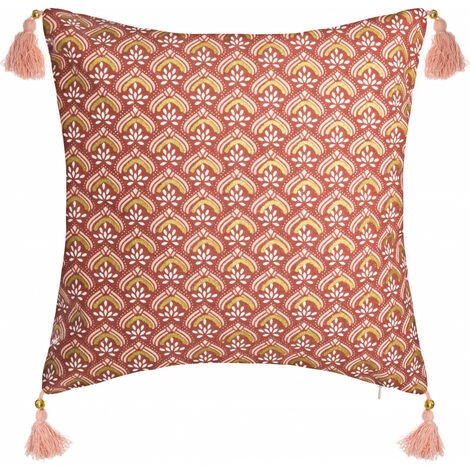 Donnez un style ethnique à votre décoration grâce à la housse coussin « Hindou or » 40 x 40 cm avec ses 4 pompons et ses perles or.