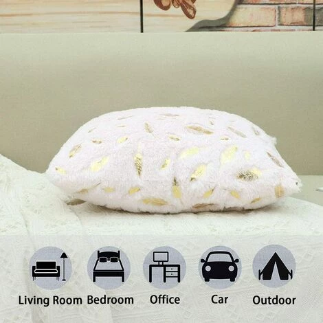 Divers modèles:La surface du housse de coussin est une peluches douce et délicate, avec des plumes dorées motifs des deux côtés. Et apportez une touche luxueuse à votre intérieur.