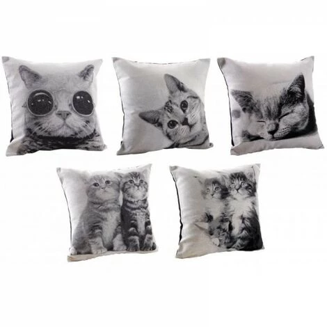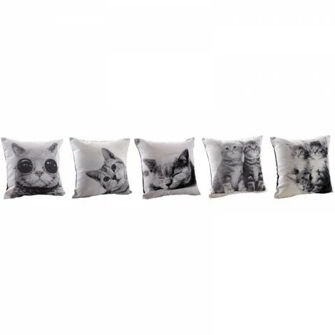Coussin chat en coton, garni fibre polyester. Housse : 30% coton 70% polyester. Motifs assortis.Matière : coton