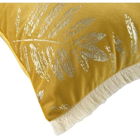 coussin déhoussable franges, jaune, 30 x 50 cm, velours imprimé or, adelor_x000D_Matériaux: 100% polyester_x000D_Dimensions de l’article: 50x30x15_x000D_Taille de l’article dans l’emballage: 50x30x15cm_x000D_Lavage: Lavage à 30° – Pas de séchage en machine – Pas de repassage_x000D_Groupe de produit: ameublement, coussinage, coussin dehoussable franges