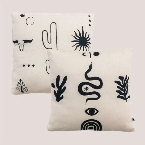 Le lot de 2 housses de coussin carrées Zaire est le complément parfait pour habiller votre maison avec goût et personnalité. Il est composé à 100% de coton offrant une touche de confort et de commodité. Il est idéal à placer sur le lit de la chambre, le canapé du salon ou toute chaise nécessitant une touche plus ergonomique. Habillez votre maison de caractère et de design avec Zaire et assurez-vous que vos invités ne passent pas inaperçus. Pour un bon entretien, nous vous recommandons de laver à une température ne dépassant pas 30º, de ne pas utiliser au sèche-linge et d’éviter l’utilisation de produits chimiques. Dimensions (Hauteur x Largeur x Profondeur): 43 cm x 43 cm x cm IMPORTANT : Le service standard porte-à-porte ne comprend pas la livraison et la collecte des marchandises au domicile du client, qui sont à la charge de ce dernier. Il est possible que le livreur aide volontairement à la livraison de la marchandise (ceci est totalement volontaire pour le livreur et la société de transport et ne relève pas de la responsabilité de Sklum).L’assemblage n’est pas non plus inclus.
