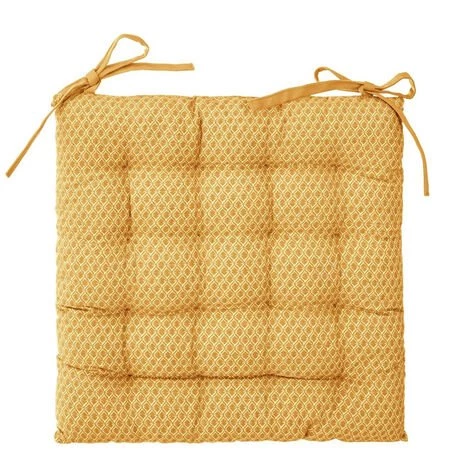 Galette de chaise apporte une touche de déco relax à votre intérieur ! Grâce à ses deux liens vous pourrez le ficeler facilement à votre chaise. Couleur: ocre. Dimension produit: L. 38 x l. 38 cm. Poids du produit: 2.36 kg. Matière: Coton