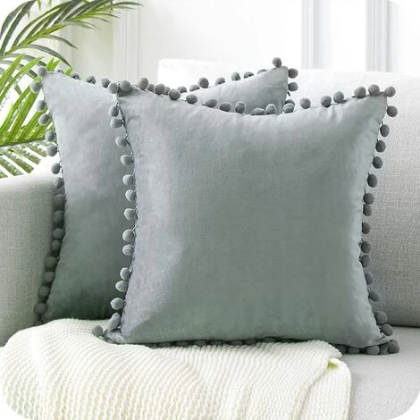 - DOUX : Housses coussins velours microfibre de haute qualité, qui touchent doux, souple et confortable, hypoallergénique, brillant et résistant aux taches, avec des pompoms rouge mignon tout autour.