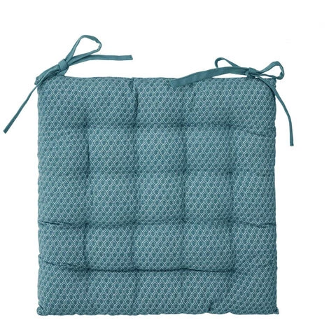 Galette de chaise apporte une touche de déco relax à votre intérieur ! Grâce à ses deux liens vous pourrez le ficeler facilement à votre chaise. Couleur: bleu canard. Dimension produit: L. 38 x l. 38 cm. Poids du produit: 3.54 kg. Matière: Coton