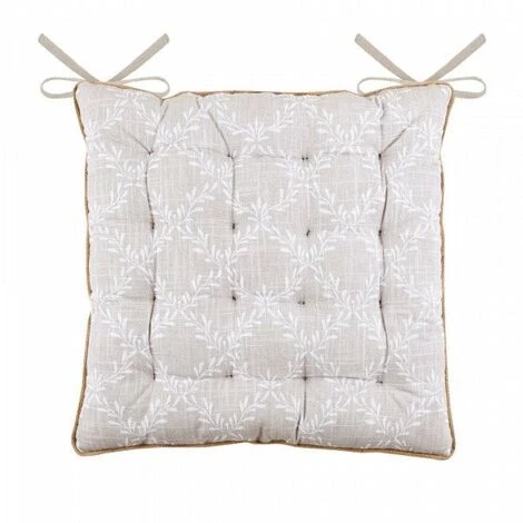 Finition : non déhoussable, 16 points, attache par nouettes au dos de la chaise. Passepoil en jute. Recto à motif et verso uni.