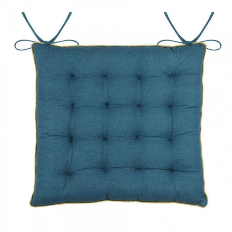 PEGANE Lot De 6 Galettes De Chaise En Coton Et Polyester Coloris Bleu Canard – Dim : L 38 X L 38 Cm