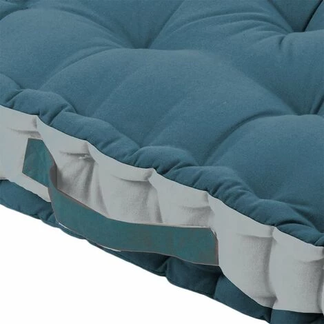 Coussin de sol 50×50 cm Duo pétrole lin coton