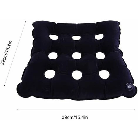CONCEPTION CREUSE POUR GARDER AU FRAIS — Cette conception unique de coussin de siège gonflable réduit considérablement le transfert de chaleur entre les fesses et le siège, augmente le flux d’air et maintient la fraîcheur au bas pour les sédentaires. Multiples trous d’aération pour une position assise sèche et stable.RELAXEZ VOS FESSES — Le coussin respirant peut soulager la fatigue sédentaire, prévenir la douleur et les engourdissements causés par la contraction musculaire des fesses, créer une position assise détendue et confortable et permettre au corps de mieux se détendre.POMPE À AIR RÉGLABLE — Coussin de siège portable Livré avec une pompe à air en prime, laissez l’air sortir lorsqu’il n’est pas utilisé ou doit être retiré, puis utilisez une pompe à air pour obtenir à nouveau un bon siège en quelques minutes.ÉVITEZ LA PRESSION ET LES DOULEURS DE DOS — Le coussin de siège carré répartit uniformément votre poids pour offrir un confort contre la douleur des points de pressionFACILE À UTILISER — Le coussin de siège portable est facile à utiliser, soutient vos fesses pour un soulagement, environnemental et non toxique, facile à nettoyer, les deux côtés sont disponibles.Nombre de pièces livrées : 1Taille: 39*39cm