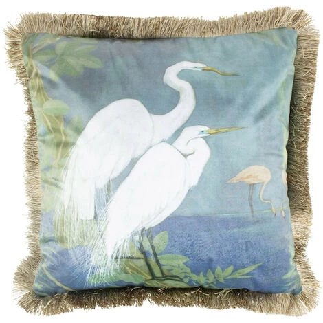 - Coussin décoratif carré en velours avec des franges dorées imprimé avec une paon. Idéal pour votre déco. Le rembourrage est inclus vous achetez donc directement un produit complet.