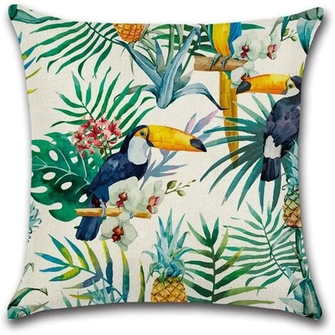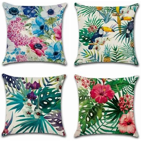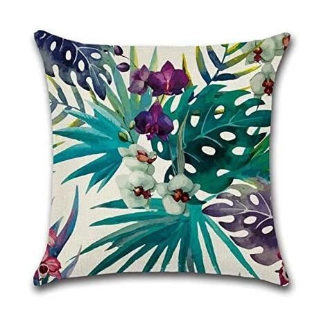 HAUTE QUALITÉ – Tropical feuilles fleurs motif Housses de Coussin, Fabriqué à partir de lin de coton de haute qualité, écologique et durable. Peut être lavé en machine ou lavé à la main. Ne pas javelliser!