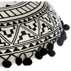 ATMOSPHERA, CRATEUR D’INTRIEUR Coussin Rond à Pompons « Delhi » 40cm Noir & Blanc