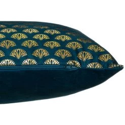Atmosphera – Coussin Déhoussable Velours Bleu Canard Et Or 30 X 50 Cm – Bleu Canard